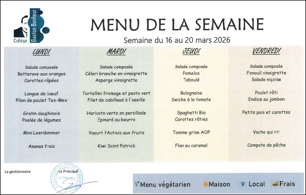 Les menus de la semaine